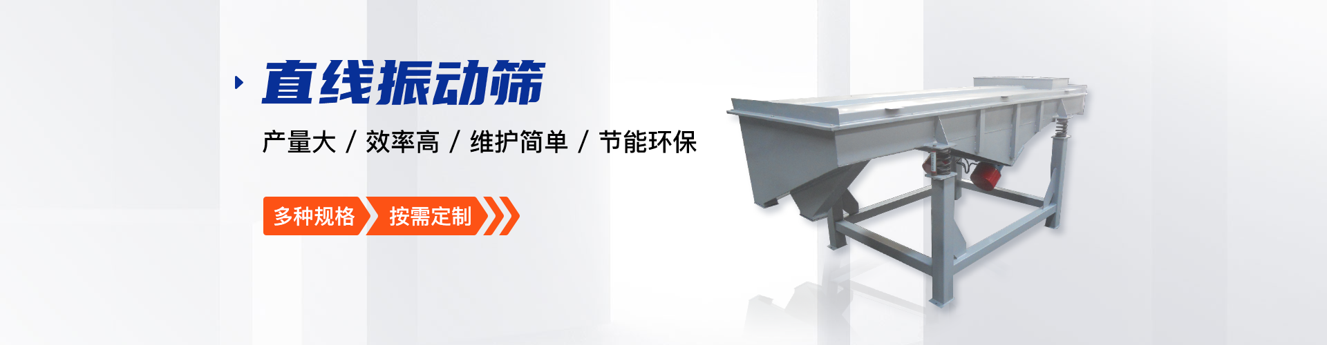 公司的主要產(chǎn)品有:三次元旋振篩、直線振動篩、圓形搖擺篩、方形搖擺篩、脫水篩、超聲波振動篩、塑料振動篩、直排篩、高頻篩、450過濾篩、實(shí)驗(yàn)篩、斗式提升機(jī)、皮帶輸送機(jī)、過濾器、振動電機(jī)等,